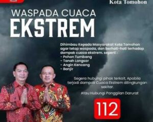 Tomohon – Cuaca ekstrem yang sedang melanda Propinsi Sulawesi Utara (Sulut), yang di dalamnya terdapat Kota Tomohon, mendapat tanggapan Pemerintah Kota (Pemkot) setempat. Walikota Tomohon
