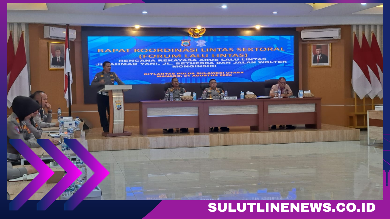 Direktorat Lalu Lintas (Ditlantas) Polda Sulut menggelar rapat koordinasi lintas sektoral (forum lalu lintas) yang dilaksanakan di ruang Tribrata Mapolda Sulut Kamis, (31/08) Siang dalam rangka rekayasa arus lalu lintas di jalan Ahmad Yani, jalan Bethesda dan jalan Wolter Monginsidi.