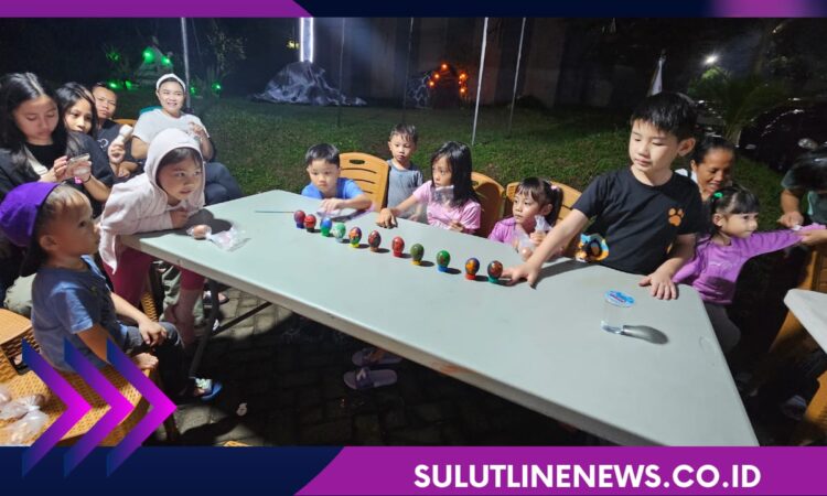 SULUTLINENEWS.CO.ID – MANADO – Suasana sukacita mewarnai perayaan Paskah yang digelar Kolom III GMIM Yesus Memberkati Citraland Manado, Minggu (31/3/2023). Anak-anak antusias mewarnai telur Paskah dalam perayaan yang digelar di area Taman Paskah Kolom III Citra Land Manado.