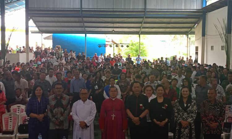 Tomohon – Walikota Tomohon Caroll Joram Azarias Senduk SH bersama Ketua TP PKK Kota Tomohon Drg. Jeand’arc Senduk Karundeng menghadiri Perayaan Syukur Penerimaan Sakramen Krisma dan Pesta Pelindung Paroki Maria Ratu Damai Tomohon, bertempat di Gedung Gereja Maria Ratu Damai Uluindano. Sabtu, (13/7/2024).
