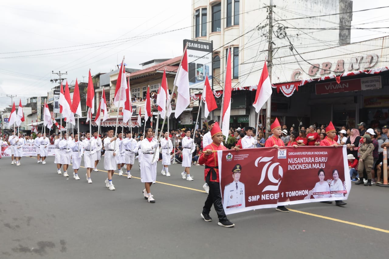 Tomohon – Peringatan HUT RI ke-79 di Kota Tomohon diperingati dengan upacara detik-ketik Proklamasi yang digelar di Stadion Babe Palar Kota Tomohon, Sabtu (17/8/2024).