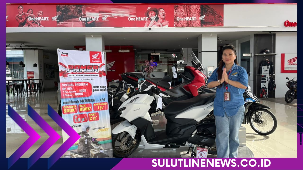 SULUTLINENEWS.CO.ID, MANADO – Dalam rangka memperingati Hari Kemerdekaan RI yang ke- 79 tahun, PT. Daya Adicipta Wisesa (DAW) bersama jaringan dealer di Sulawesi Utara turut merayakannya dengan memberikan berbagai promo menarik selama periode Agustus untuk memberikan kemudahan kepada masyarakat dalam mewujudkan impiannya bersama Honda.