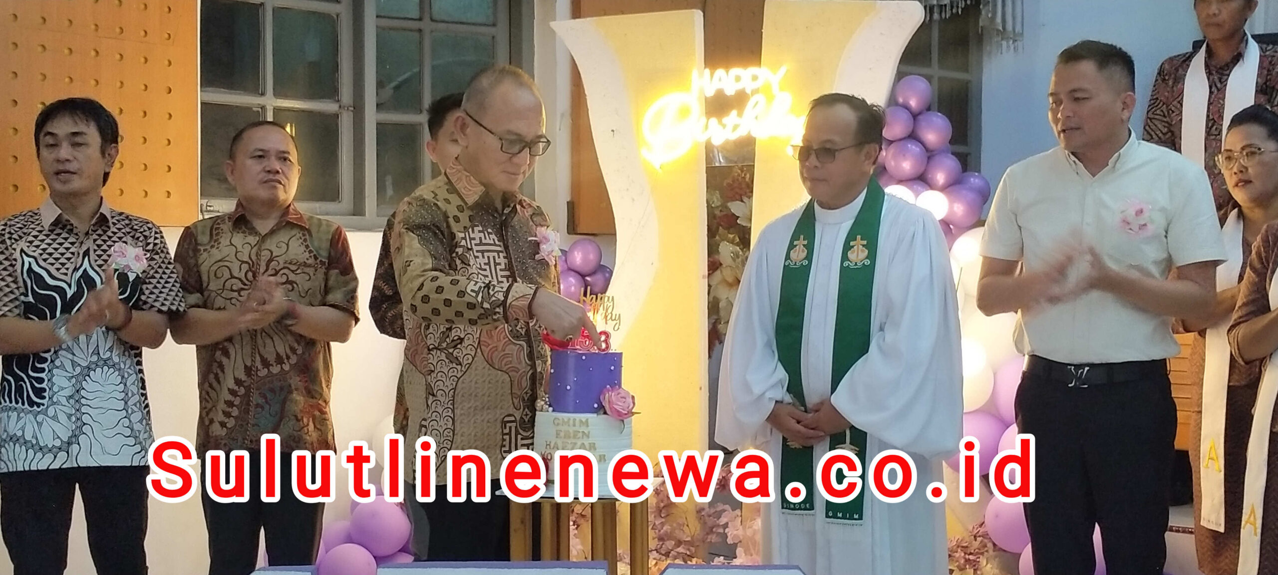 MITRA, Sulutlinenews.co.id-Pejabat Bupati Kabupaten Minahasa Tenggara (Mitra) Ir. Ronald Sorongan, M.Si menghadiri ibadah syukur dalam rangka memperingati Hari Ulang Tahun (HUT) ke 153 jemaat GMIM Ebenhaezer Molompar. Bertempat di gedung gereja GMIM Ebenhaezer Molompar, Minggu 15 September 2024.