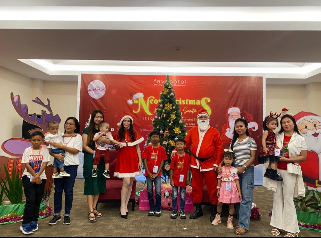 • SULUTLINENEWS.CO.ID Menyambut perayaan Natal tahun 2024, Favehotel Bitung, Kota Bitung Provinsi Sulawesi Utara melaksanakan meet and greet with Santa Claus & santa rina, Sabtu 7 desember 2024Pencanangan bulan Natal tahun 2024 di Favehotel Bitung mengangkat tema “Neon Christmas” bercahaya.Penyelenggaraan kegiatan santa claus merupakan rangkaian untuk meramaikan seluruh Masyarakat Sulawesi utara pada  umumnya dan kota bitung khususnya, dalam rangka cita natal bisa bersenang senang di Favehotel Bitung.Rangkaian acara ini juga favehotel bitung memberikan banyak hadiah mulai dari kamar junior suite, gift tumbler, lunch box, bahkan minum susu gratis dari susu zee, di berikan sebagai bentuk ucapan terima kasih dari favehotel bitung.