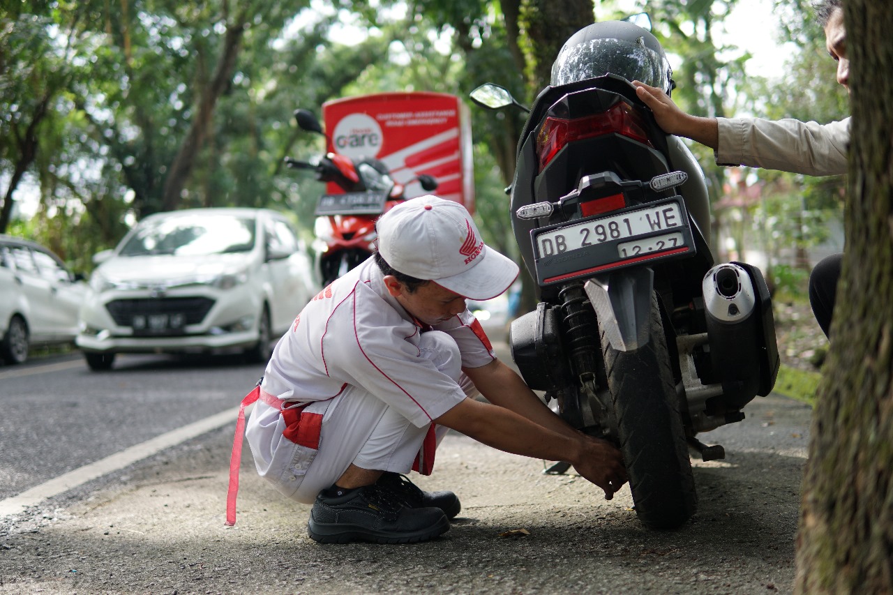 Jika dalam perjalanan Sepeda Motor mengalami kendala, dapat menghubungi call canter 0812-4488-0123 untuk mendapatkan layanan Honda Care. Honda Care adalah salah satu layanan yang diberikan untuk memaksimalkan pelayanan after sales untuk konsumen pengguna Sepeda Motor Honda jika mengalami kendala darurat (emergency) pada sepeda motornya ketika sedang diperjalanan ataupun dirumah. Layanan Honda Care ini sudah disesuaikan dengan kebutuhan dalam unit Sepeda Motor Honda.